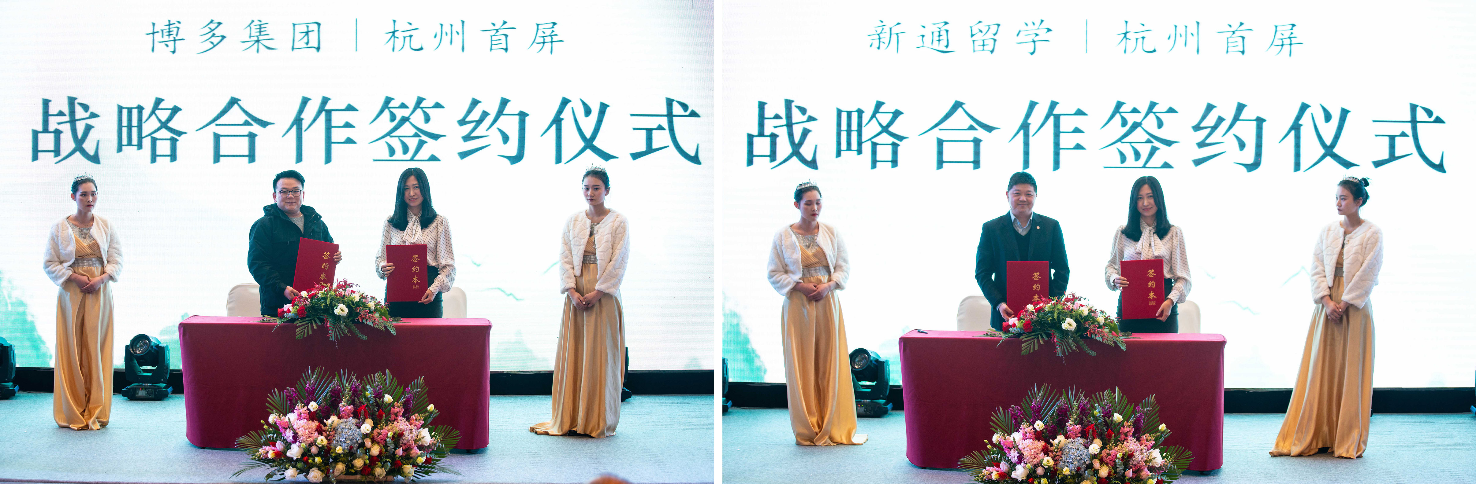 緊接著,杭州首屏科技有限公司高源先生也依次與浙江新通留學(xué)有限公司、浙江博多投資管理有限公司兩家優(yōu)質(zhì)品牌企業(yè)簽訂了長期戰(zhàn)略合作協(xié)議。