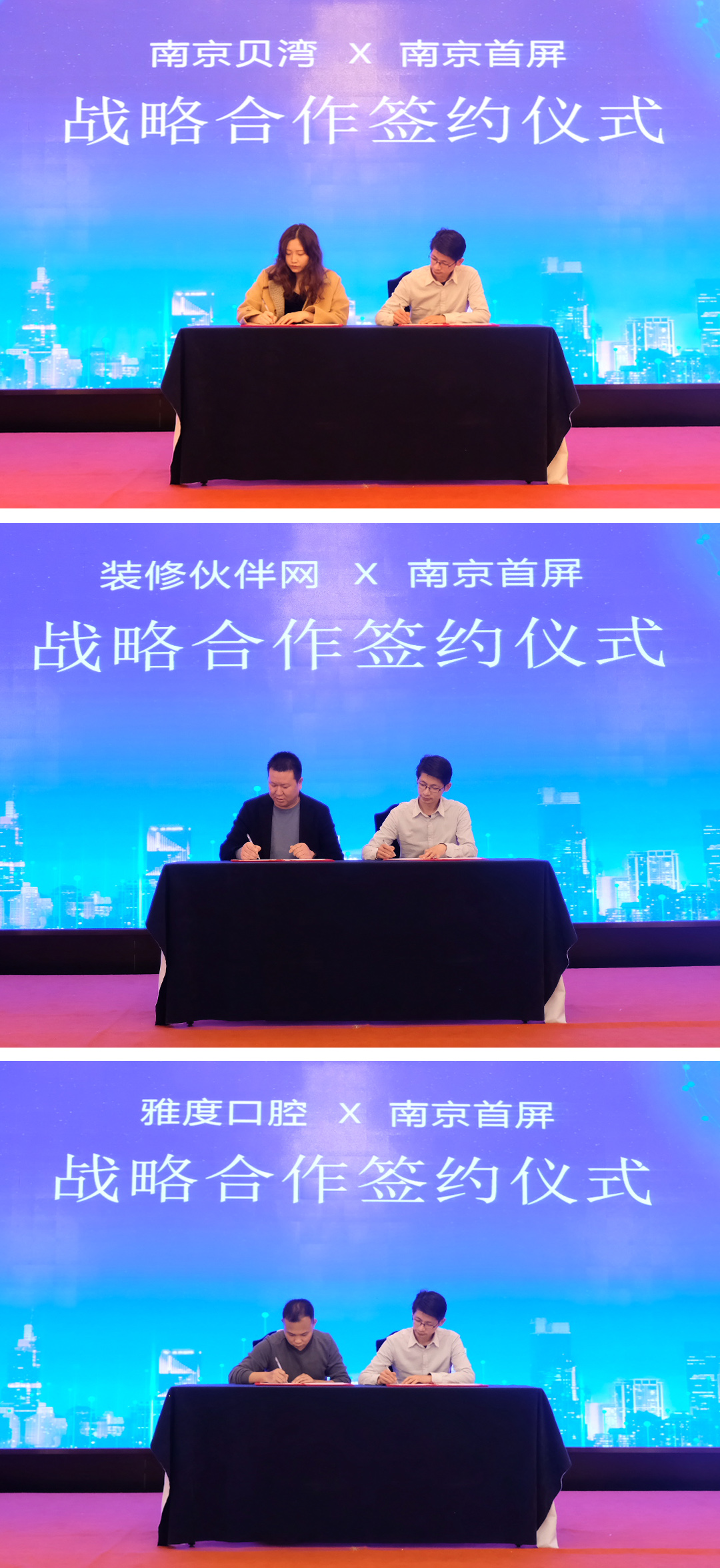 作為有著21年企業(yè)服務(wù)經(jīng)驗(yàn)的百度,始終將企業(yè)的發(fā)展放在首位,并通過智能營(yíng)銷解決方案,幫助合作伙伴實(shí)現(xiàn)企業(yè)的創(chuàng)新營(yíng)銷。會(huì)上,首屏百度營(yíng)銷(南京)服務(wù)中心分別與南京貝灣、裝修伙伴網(wǎng)、雅度口腔簽訂戰(zhàn)略合作協(xié)議,為企業(yè)提供豐富的產(chǎn)品資源及優(yōu)質(zhì)的服務(wù)。