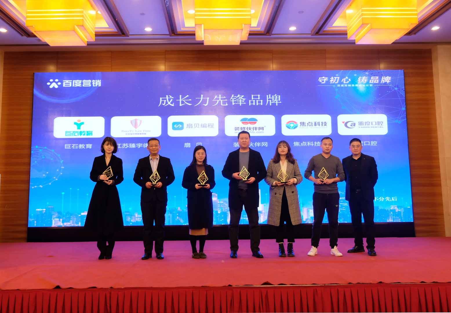 南京是一座歷史文化名城,同時(shí)也是一座創(chuàng)新名城,在創(chuàng)新的路上匯聚了眾多品牌力量。在發(fā)布會(huì)上,根據(jù)數(shù)據(jù)趨勢(shì)、百度搜索熱度排名等數(shù)據(jù),首屏百度營(yíng)銷(南京)服務(wù)中心分別為巨石教育、焦點(diǎn)科技、扇貝、裝修伙伴網(wǎng)、江蘇臻宇律所、雅度口腔6家企業(yè),頒發(fā)“成長(zhǎng)力先鋒品牌”榮譽(yù)獎(jiǎng)項(xiàng),以鼓勵(lì)品牌企業(yè)長(zhǎng)遠(yuǎn)發(fā)展。