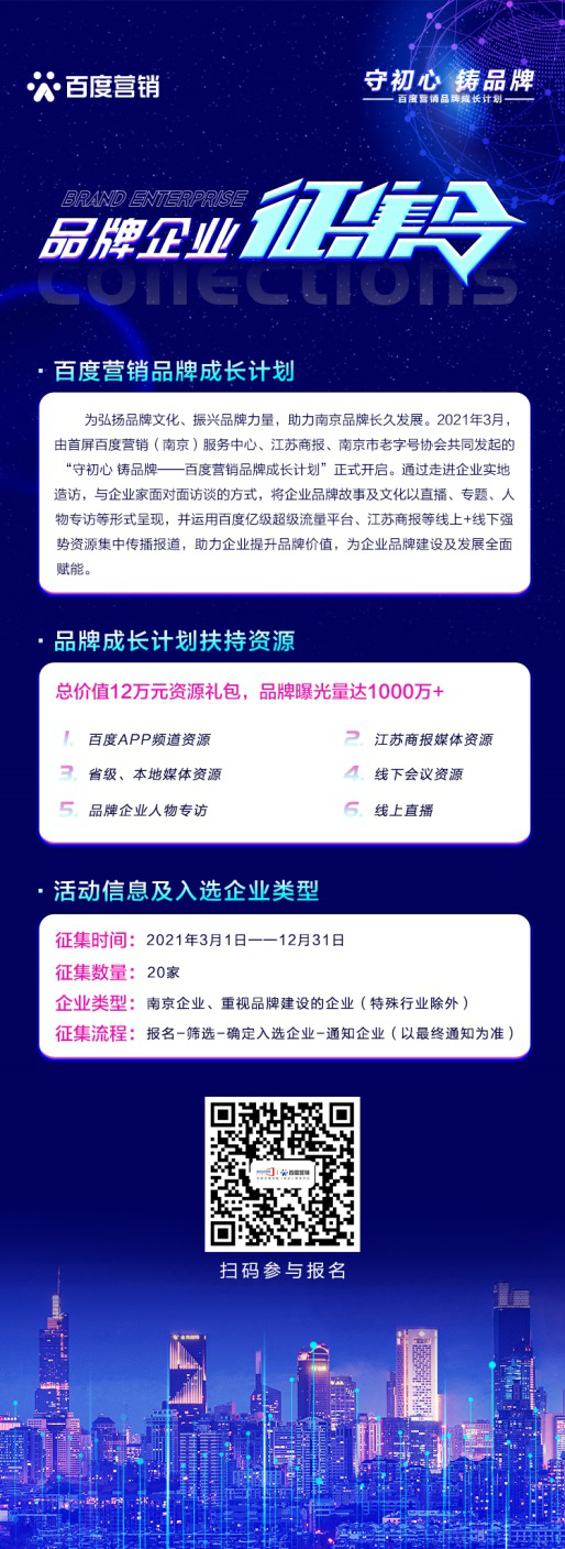 百度從傳統(tǒng)的網(wǎng)絡(luò)搜索引擎到移動(dòng)互聯(lián)網(wǎng)時(shí)代的深度布局,正以技術(shù)推動(dòng)創(chuàng)新,以AI人工智能深度賦能城市建設(shè)、產(chǎn)業(yè)升級(jí)以及品牌新競(jìng)爭(zhēng)等價(jià)值升維。在智能經(jīng)濟(jì)發(fā)展的宏觀大環(huán)境下,百度將積極求新求變、加速升級(jí)迭代,用技術(shù)驅(qū)動(dòng)商業(yè)增長(zhǎng),創(chuàng)新加速品牌成長(zhǎng),助力社會(huì)經(jīng)濟(jì)發(fā)展新勢(shì)頭。“百度營(yíng)銷品牌計(jì)劃”第二期正面向廣大品牌企業(yè)進(jìn)行征集,有興趣的品牌企業(yè)可掃描下方報(bào)名二維碼參與,期待有更多的品牌企業(yè)加入到活動(dòng)中,展現(xiàn)品牌活力、書寫品牌榮耀。